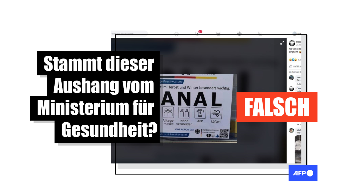 Eine Anfrage beim Gesundheitsministerium, das den Aushang gemacht haben soll, liefert bereits Aufklärung. Sprecher Oliver Ewald schrieb AFP am 26. November via Email: "Bei dieser auf Facebook verbreiteten Info-Tafel handelt es sich um eine Fälschung." Die Bundesregierung informiere Bürgerinnen und Bürger auf unterschiedlichen Kanälen über die getroffenen Maßnahmen im Rahmen der Corona-Pandemie. Der Aushang gehöre nicht dazu.