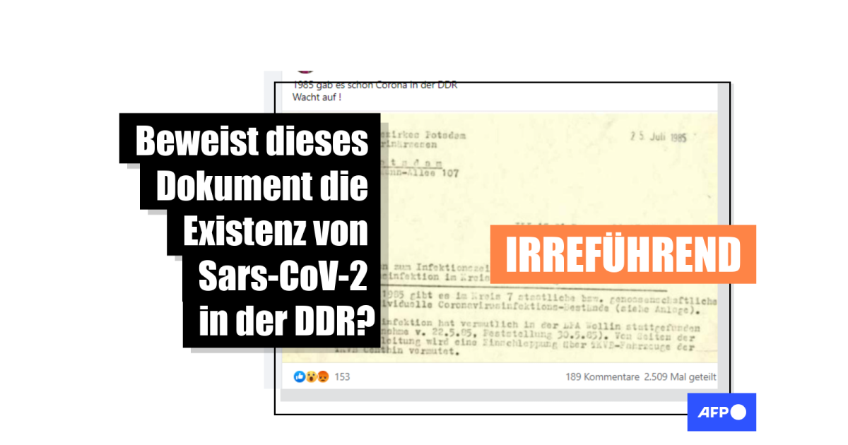 Dokumente mit älterem Datum dienen immer wieder dazu, die Existenz der aktuellen Coronavirus-Pandemie infrage zu stellen. Mal werden dazu Pandemie-Simulationen des Bundestags herangezogen, mal vermeintlich Jahre alte Patente mit Corona-Technologien, mal reichen auch einige alte Nachrichtenartikel. In all diesen Fällen fand AFP eine logische Erklärung, auch im aktuell geteilten Dokument aus der DDR ist dies der Fall.