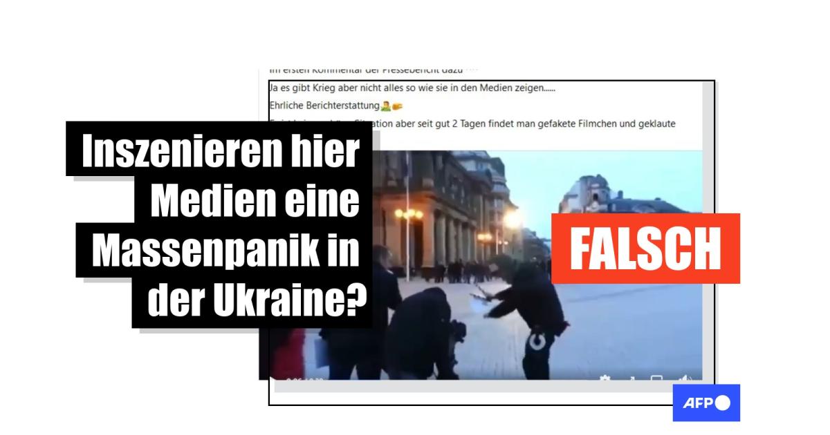 Hunderte Nutzerinnen und Nutzer haben auf Facebook einen Beitrag geteilt, in dem behauptet wird, westliche Medien hätten in der Ukraine eine Massenpanik für Fernsehkameras inszeniert. Ein ähnlicher Beitrag auf Serbisch wurde tausendfach geteilt, ein entsprechender Post auf Dänisch wurde über 45.000 Mal geteilt. AFP hat die Behauptung zuerst hier widerlegt.