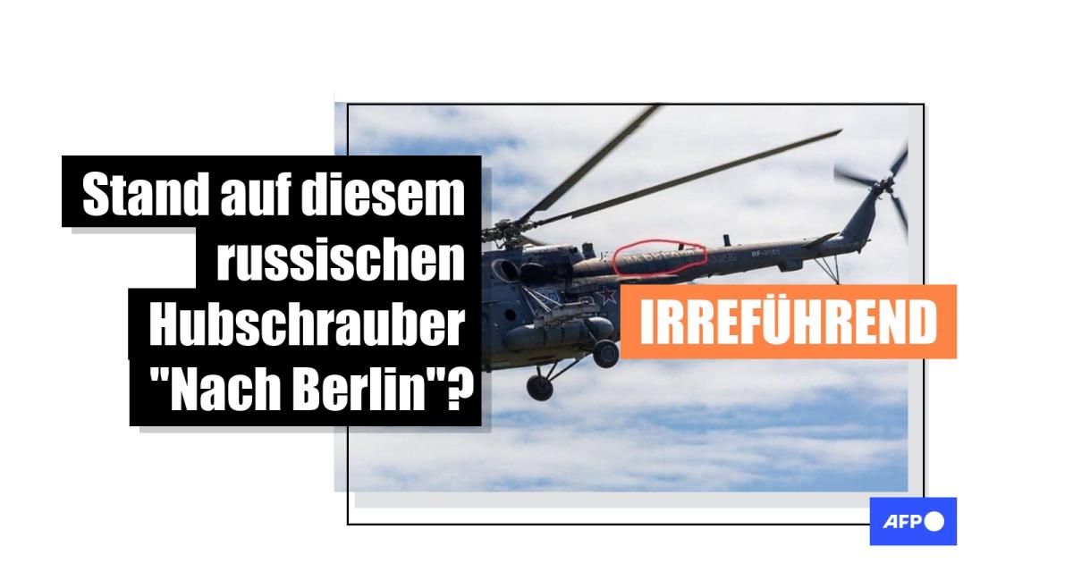 Nein, dieser russische Hubschrauber trug aktuell nicht die Aufschrift "Nach Berlin"
