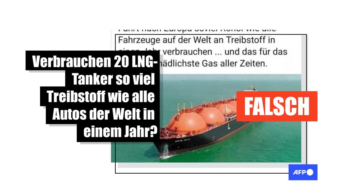 Fazit: Die Behauptung ist falsch. Moderne Flüssiggastanker nutzen einen Teil ihrer Ladung für ihren Antrieb. Der weltweite, jährliche Kraftstoffverbrauch im Straßenverkehr ist um ein Vielfaches höher als die Menge an Treibstoff, die 20 LNG-Tanker auf ihrem Weg von den USA nach Europa verbrauchen würden.