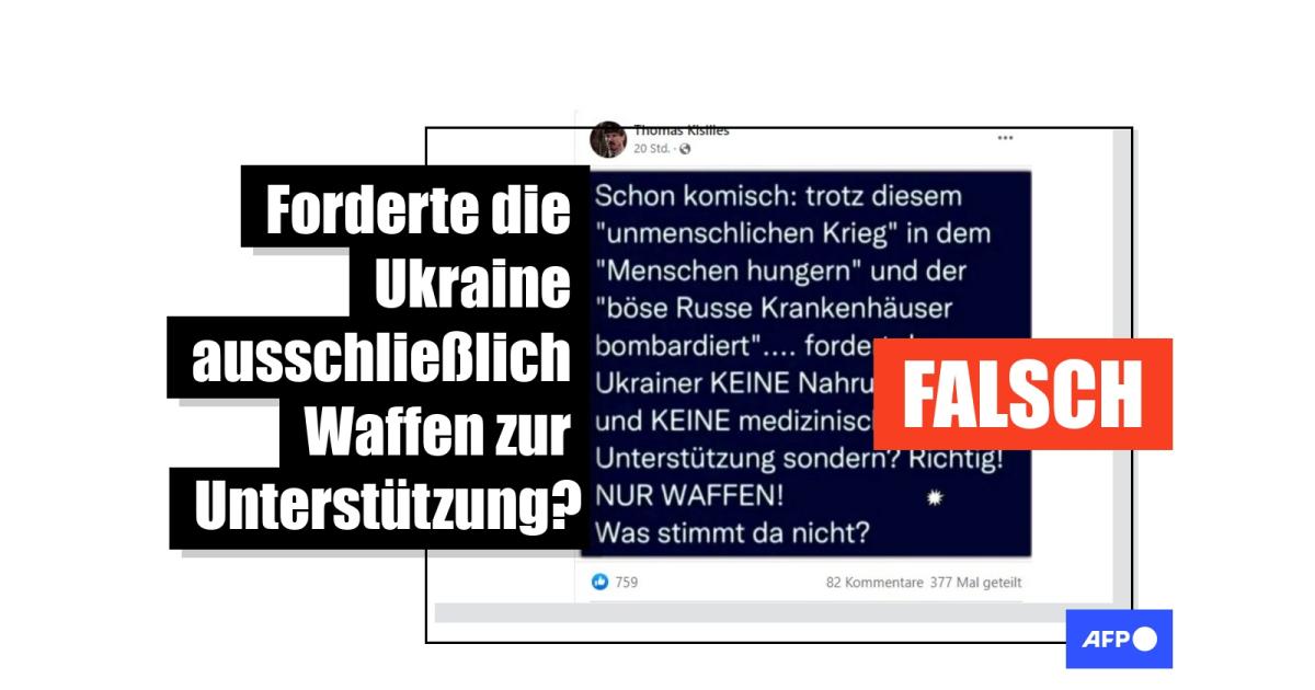 Die Behauptung: In den geteilten Postings steht: "Schon komisch: trotz diesem 'unmenschlichen Krieg' in dem 'Menschen hungern' und der 'böse Russe Krankenhäuser bombardiert'.... fordert der Ukrainer KEINE Nahrungsmittel und KEINE medizinische Unterstützung sondern? Richtig! NUR WAFFEN! Was stimmt da nicht?"