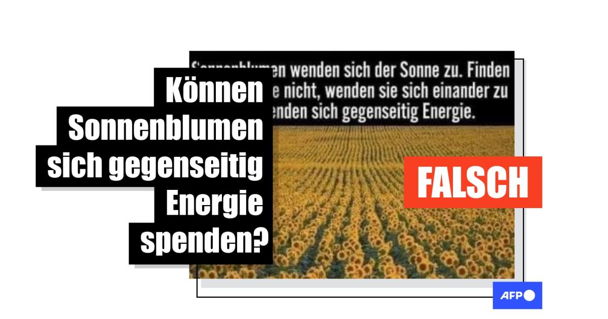 Die Behauptung: Zu einem online geteilten Bild eines Sonnenblumenfeldes wird erläutert, die Pflanzen wendeten sich der Sonne zu. Weiter heißt zu den Sonnenblumen: "Finden Sie die Sonne nicht, wenden sie sich einander zu und spenden sich gegenseitig Energie."