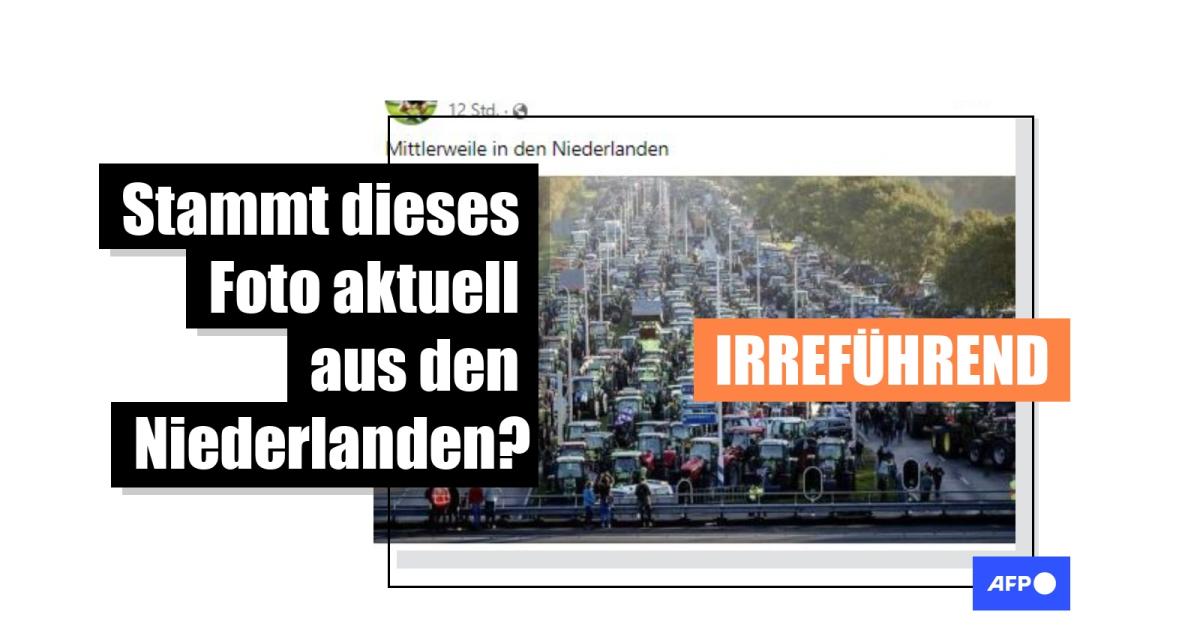 Die Behauptung: Auf Facebook wird das Foto einer von Traktoren blockierten Autobahn verbreitet. Dazu heißt es "mittlerweile in den Niederlanden" – ein Bezug zu aktuell dort stattfindenden Protesten gegen neue Auflagen für Bäuerinnen und Bauern.