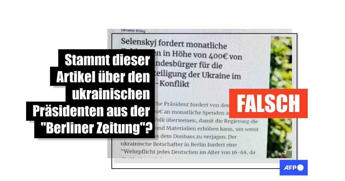 Dieser Artikel der "Berliner Zeitung" über eine angebliche Selenskyj-Forderung ist eine Fälschung