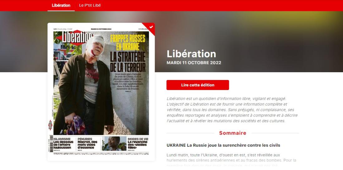 Die französische Tageszeitung Libération berichtete in ihrer Titelgeschichte vom 11. Oktober 2022 über die russischen Angriffe auf mehrere ukrainische Städte als Vergeltung für den Angriff auf die Krim-Brücke. Die Nachrichtenseite "Der Spiegel" berichtete ebenfalls zu den Raketenangriffen.
