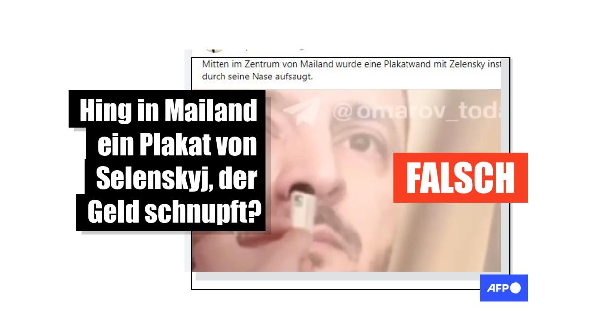 Nein, in Mailand wurde kein Plakat von Selenskyj angebracht, der Geld schnupft