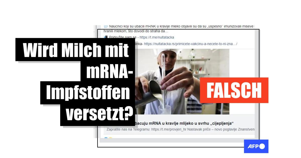 Fazit: Milchprodukte werden nicht mit mRNA-Impfstoffen versetzt. Expertinnen und Experten erklärten gegenüber AFP, dass es schwierig wäre, einen solchen Impfstoff mit Milch zu kombinieren, da das mRNA-Molekül in dieser Form nicht überleben würde und die Kosten des Verfahrens sehr hoch wären. Zudem gibt es in der EU mehrere rechtliche Mechanismen, die verhindern, dass ein derartiger Stoff der Milch zugefügt wird.