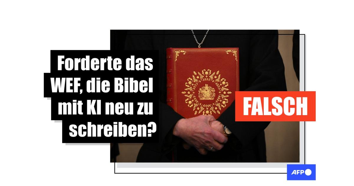 Das Weltwirtschaftsforum fordere, die Bibel zu verbieten, und "eine globalisierte 'neue Bibel'" durch KI schreiben zu lassen, heißt es in mehreren Beiträgen (Links hier, hier und hier), die seit Mitte Juni in den sozialen Netzen geteilt werden. Beiträge mit der gleichen Behauptung kursieren bereits in vielen weiteren anderen Ländern, etwa auf Französisch und Rumänisch.