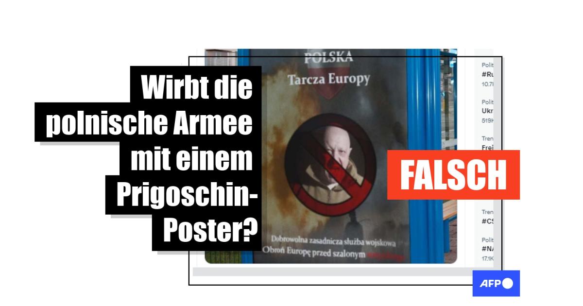 Auch wenn es stimmt, dass die polnische Armee Soldatinnen und Soldaten anwirbt, ist das Plakat, das Prigoschin als Abschreckung verwendet, eine Fotomontage. Unter den Plakaten der Kampagne, die das polnische Verteidigungsministerium seit Mai 2023 unter dem Slogan "Tritt dem freiwilligen Militärdienst bei" durchführt und die auf der Facebook-Seite des Rekrutierungszentrums eingesehen werden können (hier und hier), findet sich kein einziger Hinweis auf den Chef der Wagner-Truppe.