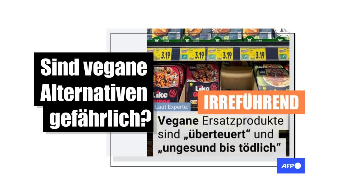Institutionen, die sich mit dem Thema beschäftigen, die AFP kontaktierte, konnten die pauschale Aussage, vegane Ersatzprodukte seien "ungesund bis tödlich", wie in dem Posting ohne nähere Hintergrundinformationen zusammengefasst, so nicht nachvollziehen.