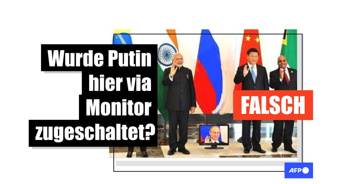 Putin war deshalb nur per Video zugeschaltet, wie zahlreiche Medien berichteten. Auch Aufnahmen von AFP belegen das. In seiner Rede beschwörte er die Stärke der Brics-Staaten. In Videos der Szene ist zu sehen, dass Putins auf einer großen Leinwand über den Köpfen der Teilnehmerinnen und Teilnehmern sowie auf mehreren Bildschirmen gezeigt wurde.