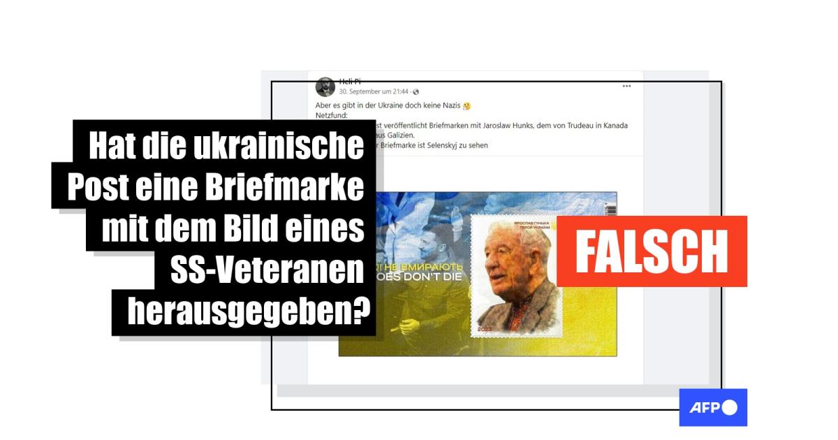 "Die Ukrainische Post veröffentlicht Briefmarken mit Jaroslaw Hunks, dem von Trudeau in Kanada geehrten SS-Nazi aus Galizien", heißt es in einem Beitrag vom 30. September 2023 auf Facebook. Dort wird eine Briefmarke gezeigt, auf der das Gesicht von Jaroslaw Hunka zu sehen ist, einem ukrainischen Veteranen des Zweiten Weltkriegs, der an der Seite der Nazis gekämpft hatte. Das gleiche Bild wurde auf X (ehemals Twitter) und Telegram gepostet, wo es mehr als 70.000 Aufrufe erhielt.