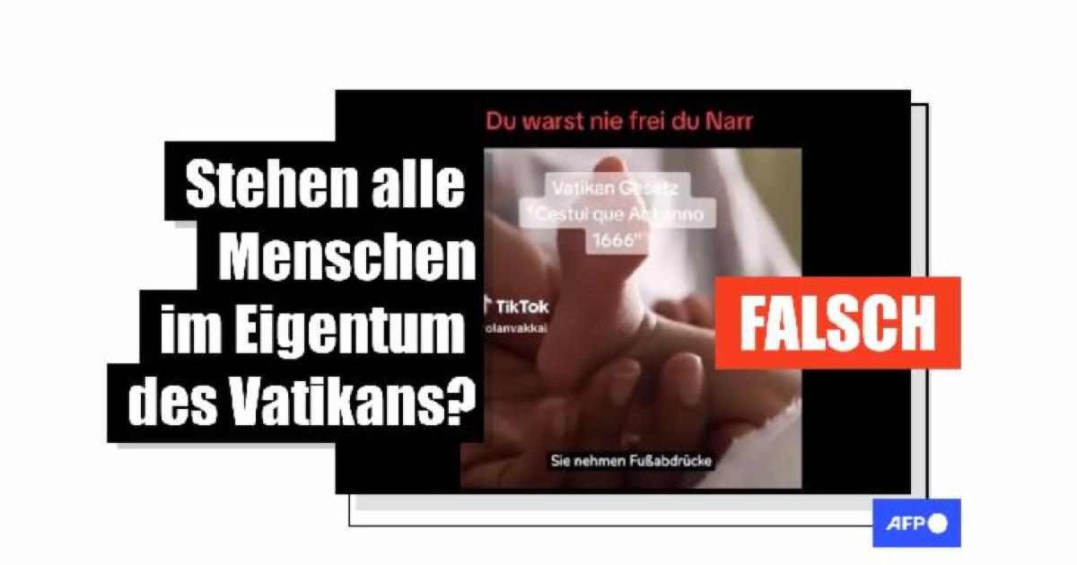 Aufgrund des Gesetzes aus dem Jahr 1666 sei jeder einzelne Mensch Eigentum der "vatikanischen Korporation", heißt es in dem Video weiter fälschlich. Beim Tod eines Menschen erhalte der Vatikan zudem eine "Abfindung" von der Person, die für den Tod verantwortlich war: "Weil du mit Erhalt der Geburtsurkunde Eigentum des Vatikan warst", heißt es.