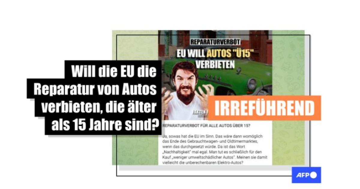 "Von wegen 'Nachhaltigkeit': EU will Reparatur aller Fahrzeuge verbieten, die älter als 15 Jahre sind", heißt es in einem Beitrag auf Facebook vom 27. Januar 2024. Auch auf X und Telegram verbreiten zahlreiche Nutzerinnen und Nutzer diese Behauptung.
