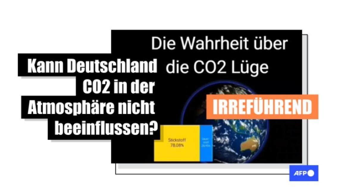 Im Video wird weiter angedeutet, dass der Anteil des Menschen an der Erderwärmung zu vernachlässigen sei. Der Wortlaut der Behauptung: "Nur 4000 von zehn Millionen Molekülen sind CO2 in der Atmosphäre. Nur 120 dieser CO2-Moleküle sind menschengemacht. Und von diesen 120 CO2-Molekülen stammen drei aus Deutschland. Drei Gas-Moleküle von zehn Millionen Gas-Molekülen sind CO2 aus Deutschland."