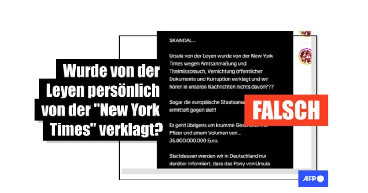 Im Zusammenhang mit der Aufarbeitung der Corona-Pandemie verbreitete sich die Falschbehauptung, von der Leyen sei von der US-amerikanischen Tageszeitung "The New York Times" wegen "Amtsanmaßung und Titelmissbrauch, Vernichtung öffentlicher Dokumente und Korruption" verklagt worden. Hierzulande werde darüber jedoch gar nicht berichtet.