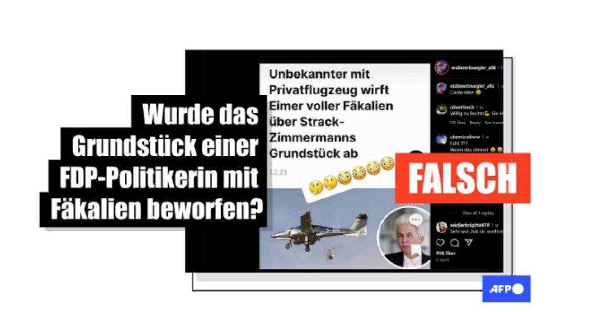 Fazit: Ein im Netz als echt geteilter Zeitungsartikel stammt von einer Satireseite. Die Behauptung, es sei ein Eimer mit Fäkalien über dem Grundstück von Marie-Agnes Strack-Zimmermann abgeworfen worden, stimmt nicht. Das bestätigte auch das Büro der FDP-Politikerin.