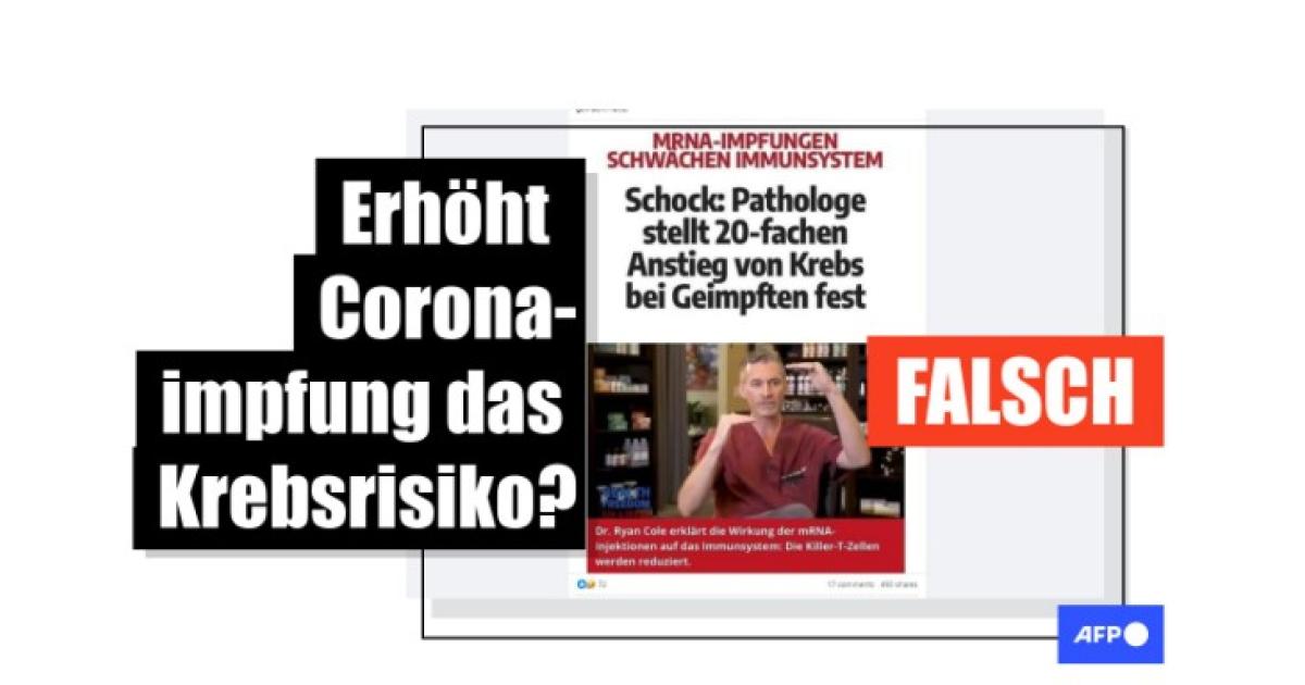 Der US-amerikanische Pathologe Ryan Cole hat in der Vergangenheit mehrere Falschbehauptungen im Zusammenhang mit der Coronaimpfung getätigt. AFP hat diese etwa hier und hier überprüft. Seit mindestens 2021 stellt Cole fälschlicherweise einen Zusammenhang mit der Coronaimpfung und Krebs her. AFP hat mehrfach Behauptungen diesbezüglich widerlegt (zum Beispiel hier und hier).