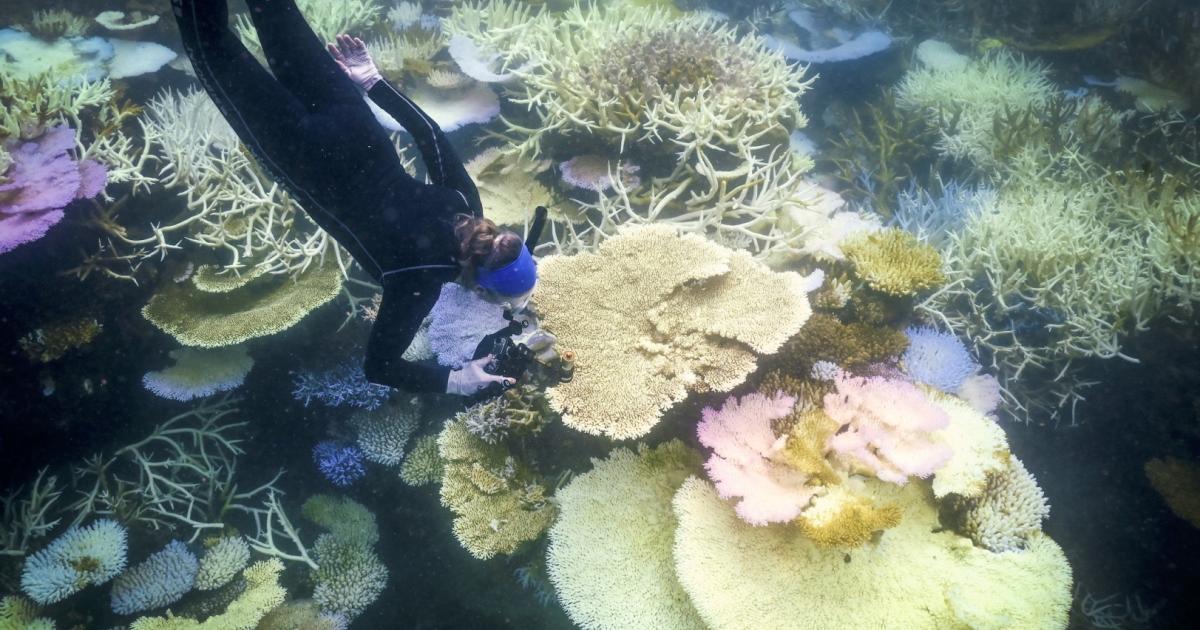 Korallenbleiche findet statt, wenn die Wassertemperatur steigt und die Korallen deswegen mikroskopisch kleine Algen – sogenannte Zooxanthellen – ausstoßen, um zu überleben. Im australischen Great Barrier Reef fand 2023/2024 die größte Massenbleiche seit Beginn der Aufzeichnungen statt.