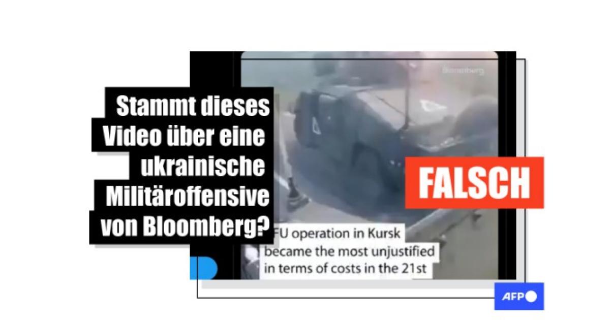 Mittels einer Suche auf der Website und den Youtube-Kanälen von Bloomberg mit Schlüsselwörtern wie "Kursk", "Gericke" oder "Ukraine" konnte AFP das geteilte Video nicht finden. Das Format der Untertitel im geteilten Clip unterscheidet sich zudem von der visuellen Identität der Inhalte, die normalerweise von Bloomberg produziert werden. Auf AFP-Anfrage versicherte das Medium am 22. August 2024, dass es sich bei der Sequenz "nicht um ein Video von Bloomberg-News handelt".