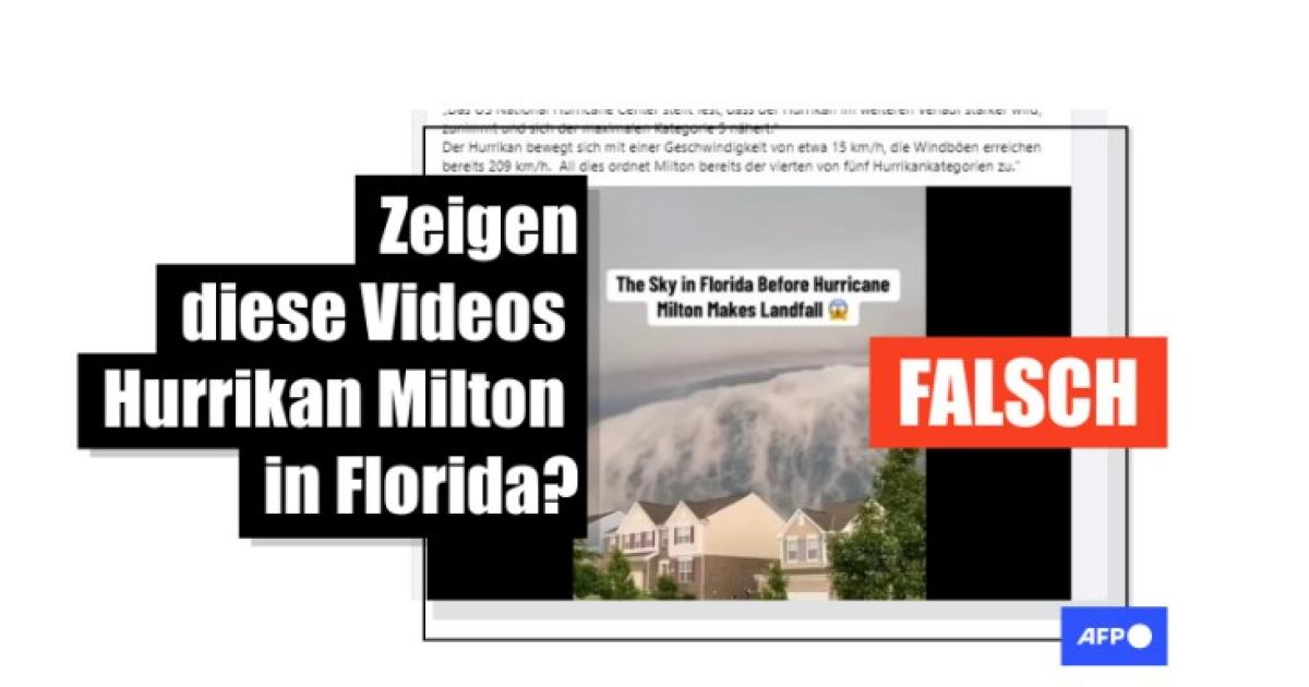 Eine millionenfach im Internet aufgerufene Zusammenstellung von Videos soll verschiedene Aufnahmen von dunklen, apokalyptischen Gewitterwolken zeigen, die den Himmel bedecken, bevor der Hurrikan Milton über den US-Bundesstaat Florida hinwegfegt. Die Videoclips haben jedoch nichts mit dem Hurrikan vom Oktober 2024 zu tun. Mehrere von ihnen wurden außerhalb Floridas gedreht.