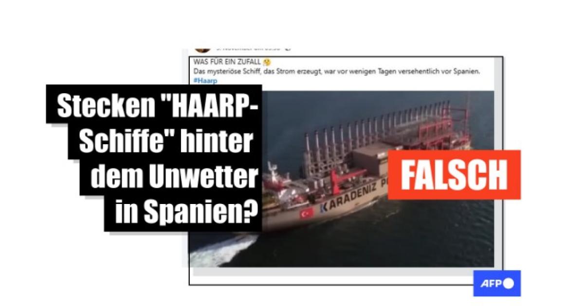 Fazit: Nach den tödlichen Überschwemmungen in Spanien Ende Oktober 2024 kursierte die Falschbehauptung, dass zum Zeitpunkt der Katastrophe Schiffe vor der Küste Valencias gesichtet wurden, die mit dem US-Forschungsprogramm HAARP in Verbindung stehen und angeblich für die heftigen Regenfälle gesorgt hätten. Tatsächlich handelt es sich jedoch um Stromschiffe eines türkischen Unternehmens, die sich zu jenem Zeitpunkt nicht in der Nähe von Valencia befanden.