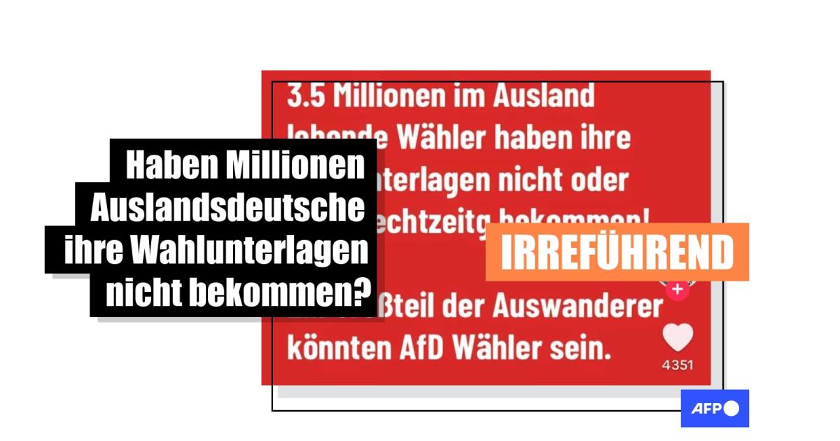 Doch in Beiträgen auf Tiktok, Facebook, Telegram oder Instagram war am Wahltag fälschlich die Rede von "3,5 Mio Wählerstimmen", die "weg" seien. Ein User stellte die These auf, dass "ein Großteil der Auswanderer AfD Wähler" sein könnte. Die Gültigkeit der Wahl wurde in Frage gestellt, weil sechs Prozent der Stimmen fehlen würden.