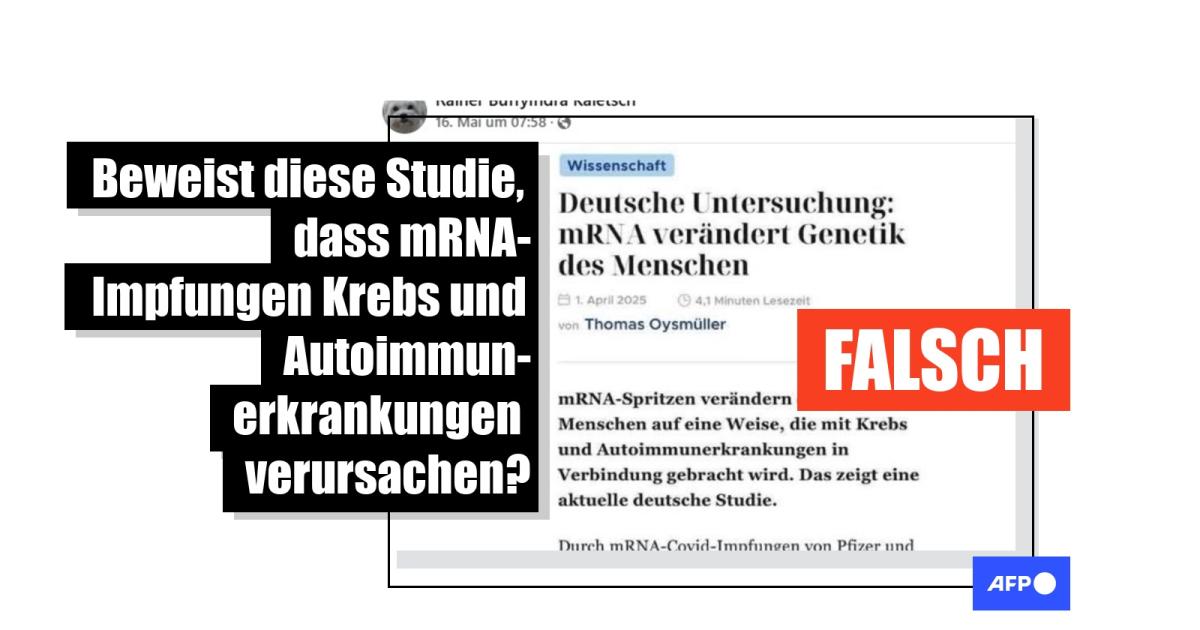 Seit dem Ausbruch von Covid-19 und der Einführung von neuartigen Impfstoffen, die geholfen haben, die Pandemie einzudämmen, sind mRNA-Impfstoffe immer wieder Ziel von Desinformation. Online wurde behauptet, eine deutsche Studie sei zu dem Schluss gekommen, dass die Vakzine Krebs sowie Autoimmunerkrankungen verursachen könnten. Doch ein Mitautor der besagten Studie sowie weitere Experten stritten dies gegenüber AFP ab. Die Beiträge griffen einen Artikel auf, der Wochen zuvor von einer Anti-Impfstoff-Interessengruppe veröffentlicht worden war, deren Vorsitzender einst der US-Gesundheitsminister Robert F. Kennedy Jr. war.