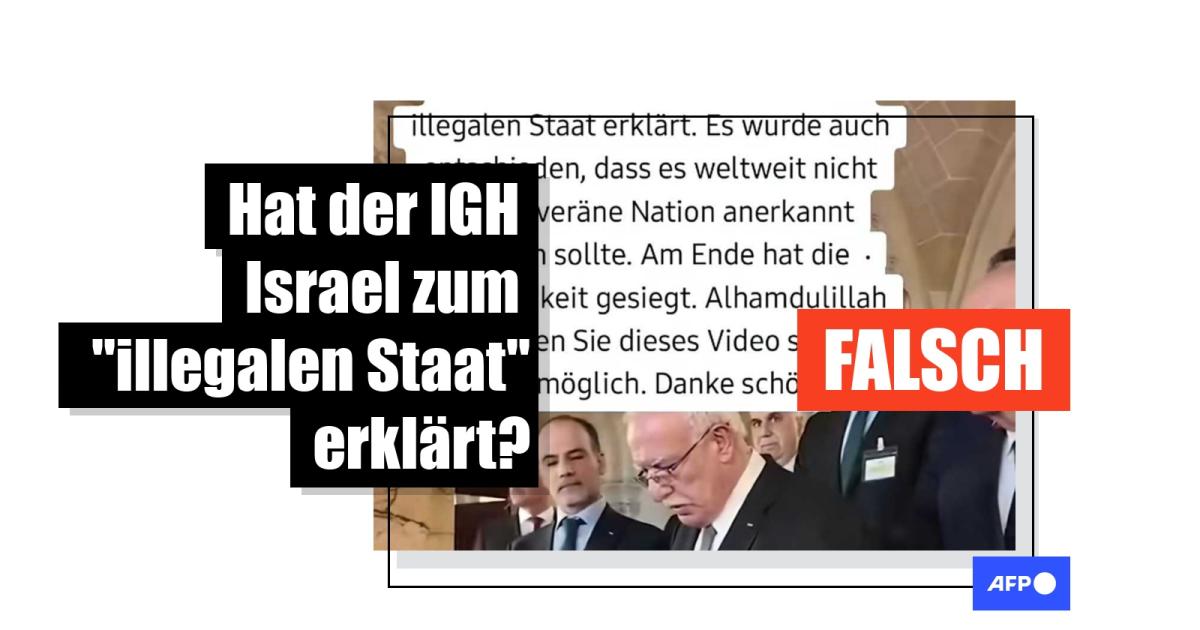 Fazit: AFP fand keine öffentliche Aufzeichnung, wonach der IGH Israel als "illegalen Staat" bezeichnete. In einem Rechtsgutachten erklärte das Gericht Israels Besatzung palästinensischer Gebiete für illegal.
