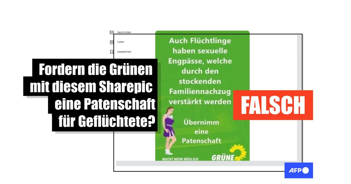 Ein angebliches Sharepic der Grünen fordert Patenschaften für Geflüchtete. "Auch Flüchtlinge haben sexuelle Engpässe, welche durch den stockenden Familiennachzug verstärkt werden", steht auf dem Bild in einem X-Beitrag vom 5. Juli 2025, der mehr als eintausend Mal geteilt wurde. "Übernimm eine Patenschaft." Auf dem Sharepic ist außerdem das Logo der Grünen Nordrhein-Westfalen zu sehen. Die Verfasserin des Beitrags echauffiert sich über diese vermeintliche Forderung der Grünen und schreibt: "Pfui Teufel, wie ekelhaft ist das denn! Grüne bitte unter 5%!" Auch auf Facebook kursierte das Sharepic.