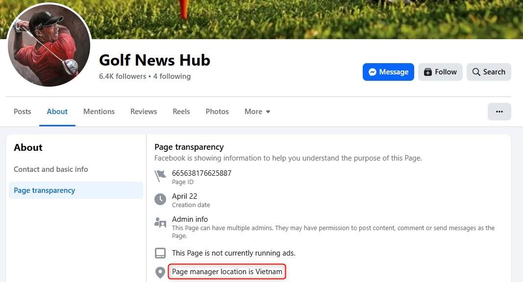 Jede der Facebook-Seiten, die AFP ausfindig machen konnte und die Behauptungen über Kirks Vater verbreiteten, hatten ein Seiten-Management in Vietnam. Um den Standort der Personen zu überprüfen, die eine Seite betreiben, können Nutzerinnen und Nutzer auf die Registerkarte "Über" klicken und die "Seitentransparenz" überprüfen.