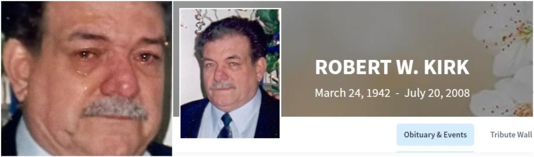 Eine umgekehrte Bildsuche für das in vielen Beiträgen verwendete Foto ergab, dass es aus einem Nachruf auf einen Robert W. Kirk stammt, der im Juli 2008 in Monterey, Indiana, verstorben ist – und nicht Kirks Vater ist (hier archiviert).