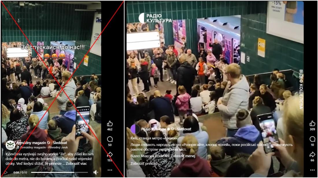 Eine umgekehrte Bildsuche nach Ausschnitten des Videos führte zu einem Facebook-Beitrag des Senders Radio Culture vom 10. Oktober 2022, der dem ukrainischen öffentlich-rechtlichen Rundfunk angehört. Der Beitrag, der einen 27-sekündigen Ausschnitt aus einer U-Bahn-Station zeigt, enthält die folgende Beschreibung: "U-Bahn-Station 'Nyvky' in Kiew. Die Menschen singen das Volkslied 'Spannt eure Pferde aus, Jungs', während russische Truppen weiterhin ukrainische Städte mit Raketen bombardieren."