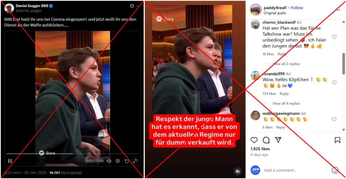 Ein Video von einem Jungen, der in einer TV-Sendung mit der Politik abrechnet, erhielt Mitte Oktober 2025 tausende Shares und Likes auf Facebook, Instagram und X. In den Kommentaren stießen die Aussagen auf Zustimmung: "Respekt, der junge Mann hat kapiert, dass er von dem aktuellen Regime nur für dumm verkauft wird", lautete eine Einblendung im Clip. "Hut ab! Wo war das?", fragte eine andere Userin. Auch auf Tiktok fand die Szene Anklang bei Userinnen und Usern.