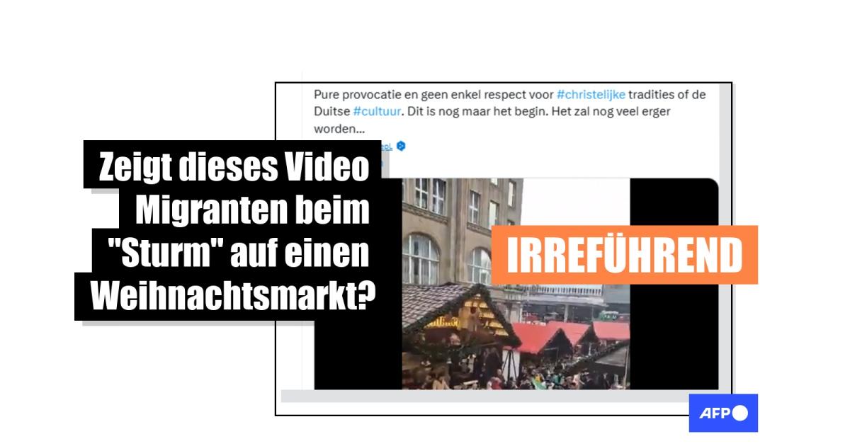 In Deutschland wird seit einigen Jahren über die Sicherheit von Weihnachtsmärkten diskutiert, nachdem es zu tödlichen Anschlägen gekommen war. Dies hat zur Verbreitung mehrerer Falschbehauptungen geführt. Im November 2025 kursierte ein Video, das angeblich zeigt, wie "Migranten einen Weihnachtsmarkt in Deutschland stürmen". Tatsächlich zeigt das Video jedoch eine friedliche Demonstration in Essen am 8. Dezember 2024 zur Feier des Sturzes des ehemaligen syrischen Präsidenten Baschar al-Assad. Laut den Behörden verlief die Demonstration ohne Zwischenfälle.