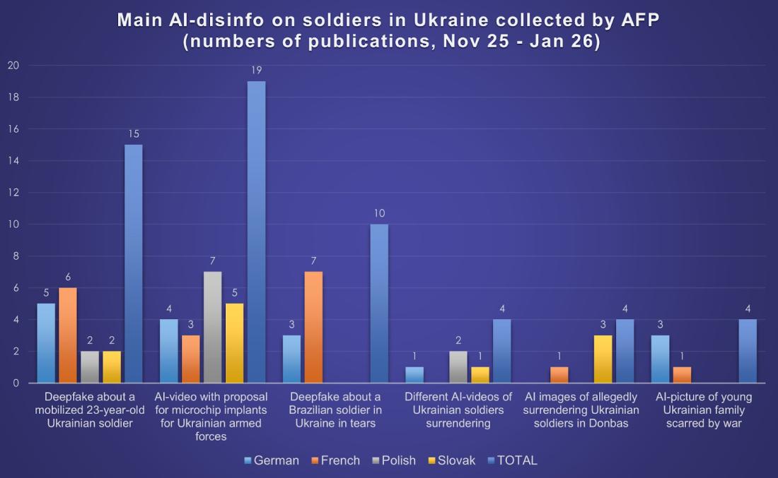 Das Faktencheck-Team der Deutschen Presse-Agentur (dpa) dokumentierte den verstärkten Einsatz von KI-Videos in diesem Zusammenhang bereits seit Oktober 2025: Neben skurrilen Clips, wie etwa einem Video eines russischen Soldaten mit einem Wildschwein bei Kupjansk, prüfte die dpa ebenfalls das Video eines weinenden ukrainischen Soldaten, der sich als KI-generiert herausstellte. Die Austria Presse Agentur (APA) thematisierte derartige Soldaten-Videos im November 2025 und zog gegenüber AFP Parallelen zu ähnlichen KI-Inhalten in anderen Konflikten, etwa im Gazastreifen. Auch das Faktencheck-Team des Recherchenetzwerks Correctiv hat in einer Reihe von Faktenchecks dargelegt, wie vielfältig KI-Manipulationen im Kontext des russischen Angriffskrieges in der Ukraine sind.
