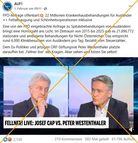 Zur Behauptung wurde häufig auch ein Clip geteilt, der einen ehemaligen FPÖ-Politiker in einem Interview zu dem Thema zeigt. Peter Westenthaler war bis 2013 Nationalratsmitglied und fungiert seit 2024 als von der FPÖ entsandter Stiftungsrat der öffentlich-rechtlichen Rundfunkanstalt ORF. Im Clip sagt Westenthaler, es hätte 22 Millionen Behandlungen von "Zuwanderern" gegeben, "die keinen einzigen Cent eingezahlt" hätten in die Gesundheitsversorgung. Dafür hätte die Regierung "mehrere Milliarden Euro" ausgegeben. Das vollständige Interview lud der österreichische Sender OE24 am 28. Januar 2026 auf Youtube hoch.
