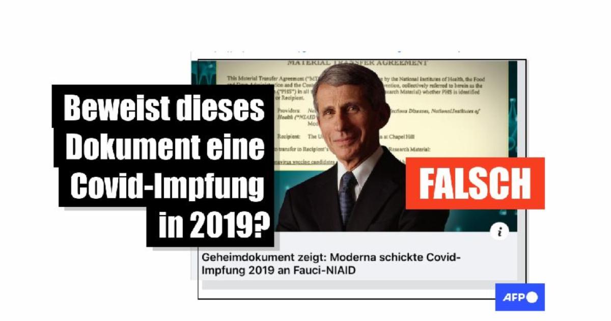 Mehr als hunderttausend User haben seit dem 19. Juni eine Behauptung auf Facebook und Telegram gesehen, wonach das Labor des Pharmaherstellers Moderna angeblich schon im Dezember 2019 von Sars-CoV-2 gewusst habe. Als Beweis dient ein vermeintliches Geheimdokument, das Moderna damals an das US-Institut für Allergien und ansteckende Krankheiten (Niaid) geschickt hatte. In diesem tatsächlich existierenden Dokument ist zwar von einer Impfung gegen Corona die Rede. Es handelt sich aber um eine ältere Variante des Virus, die nichts mit Sars-CoV-2 zu tun hat.