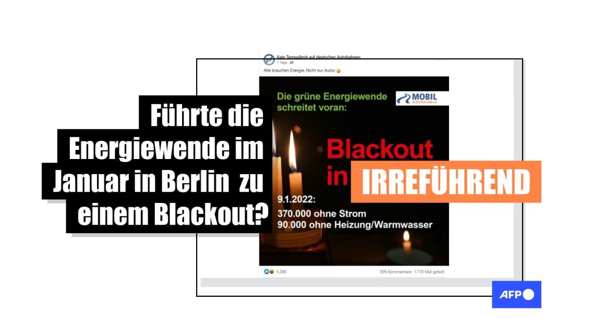Fazit: Die Ursache für einen Stromausfall am 9. Januar 2022 in Berlin war nicht die Energiewende. Das bestätigten sowohl der Stromnetzbetreiber als auch ein betroffenes Heizkraftwerk. Auch die ursprüngliche Quelle des Bildes selbst, "Mobil in Deutschland", sprach auf AFP-Anfrage von Satire.