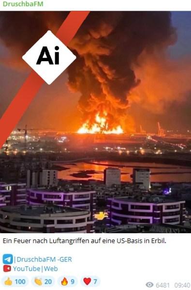 Foto von Explosion einer US-Militärbasis in Erbil wurde mit KI manipuliert