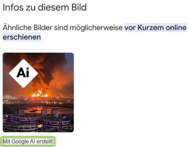 Eine umgekehrte Bildsuche bei Google und ein Blick in den Abschnitt "Über dieses Bild" zeigen, dass das Bild "mit der KI von Google" erstellt wurde.