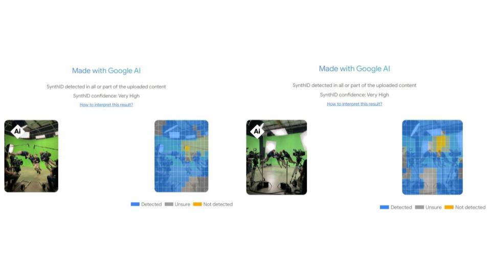 AFP analysierte die Bilder auch mit dem SynthID-Erkennungstool von Google, welches das Wasserzeichen der Google-KI erkannte und zu dem Ergebnis kam, dass sie beide höchstwahrscheinlich KI-generiert wurden.