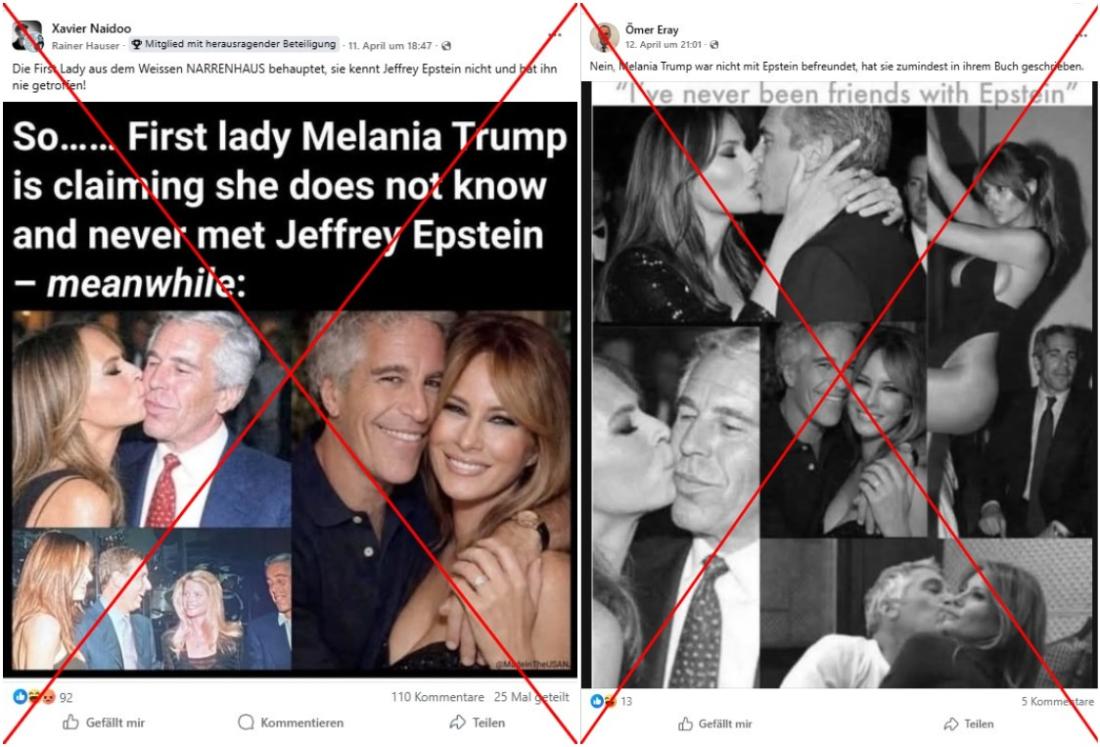 Kurz nach Melania Trumps Stellungnahme kursierten in sozialen Medien Collagen aus mehreren Fotos, die angeblich die Ehefrau von US-Präsident Donald Trump in verschiedenen intimen Situationen mit dem Finanzier Epstein zeigen würden.