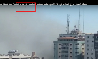 Auch eine Analyse des Senders Al-Jazeera zeigt ab Minute 0:20 eindeutig, dass Raketen beim Angriff auf das Hochhaus zum Einsatz kamen.