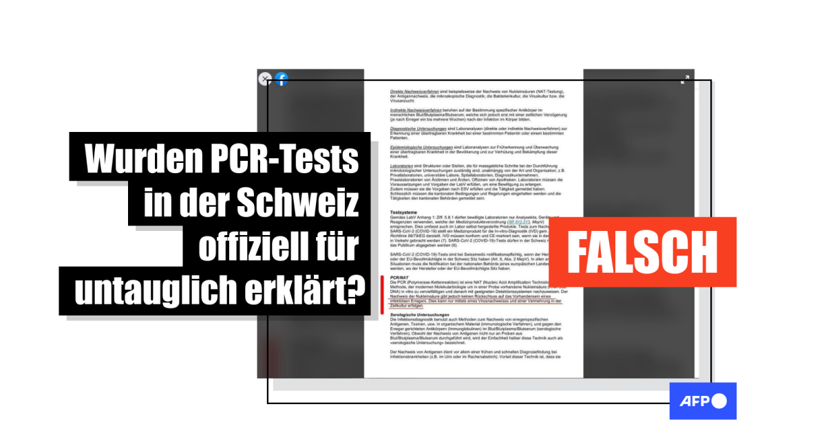 Irreführende Aussagen zur Genauigkeit von PCR-Tests widerlegte AFP Australien bereits hier. Ähnliche Behauptungen zum Schweizer Merkblatt hat außerdem AFP Philippinen hier widerlegt.