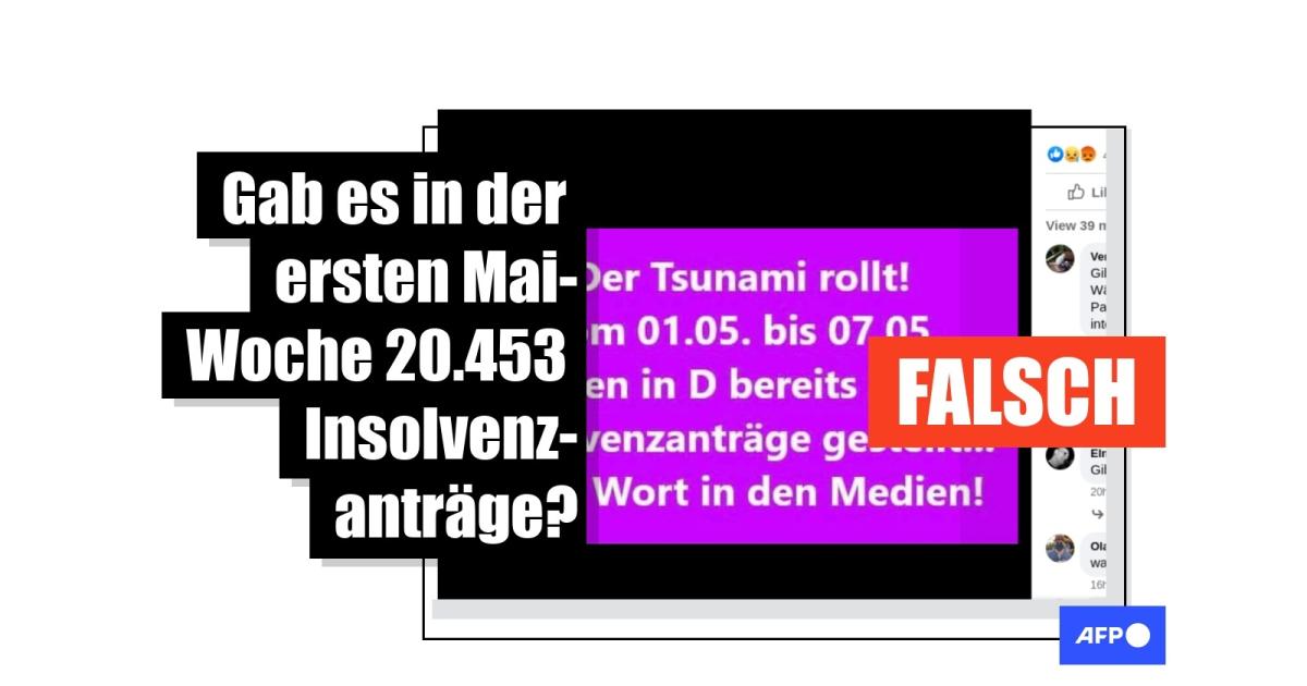 AFP hat zunächst nach statistischen Erhebungen über die Anzahl an Anträgen gesucht. Weder beim Statistischen Bundesamt noch beim Anbieter Statista waren Zahlen für den Mai verfügbar. Anschließend hat AFP die in vielen Postings angegebene Quelle näher angeschaut: die Datenbank "Insolvenzbekanntmachungen.de", die vom Justizministerium in Nordrhein-Westfalen verantwortet wird. Als AFP dort ohne Suchfilter (genau wie die Postings) in der Zeit vom 1. Mai bis zum 7. Mai suchte, zeigte die Tabelle tatsächlich die Zahl 20.434. Die in den Postings leicht abweichenden Ergebnisse lassen sich durch die Anwendung unterschiedlicher Suchfilter in der Datenbank erklären.