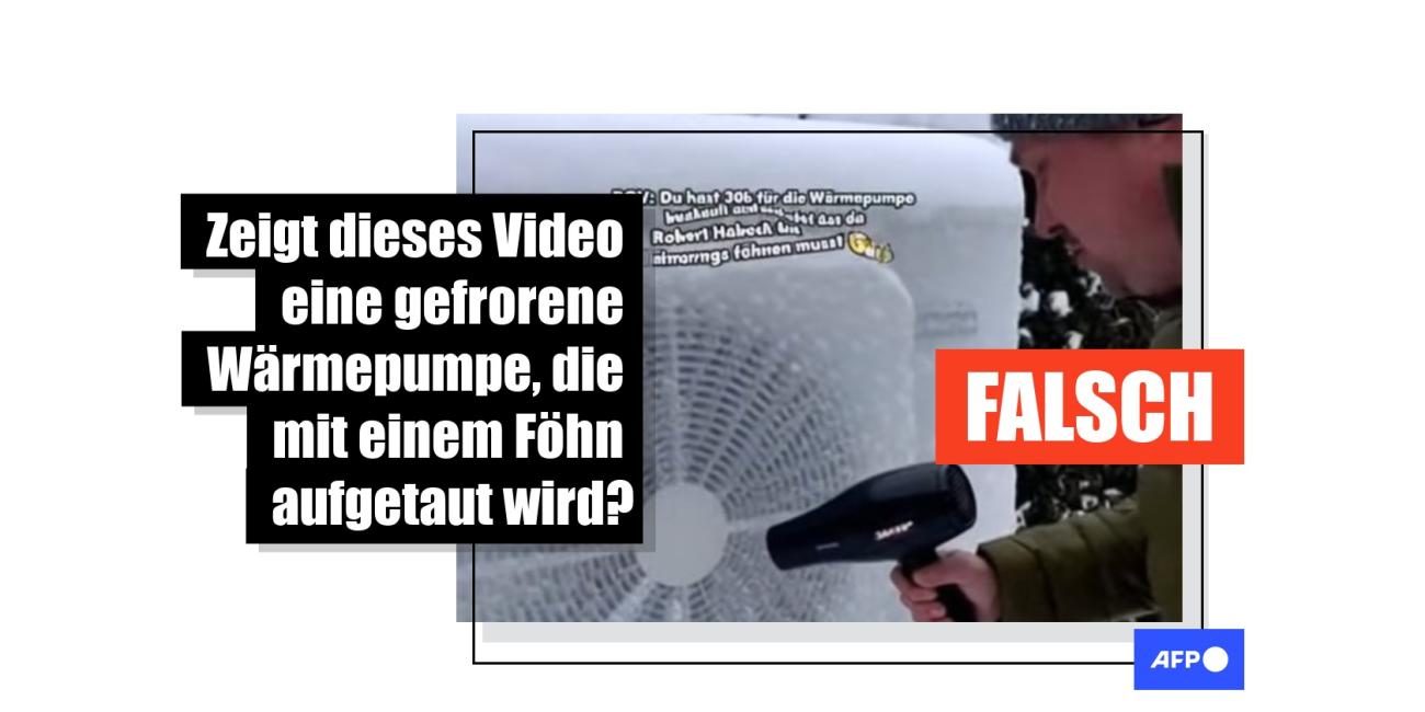 Mann föhnt vereiste Wärmepumpe: Hierbei handelt es sich um ein KI-Video