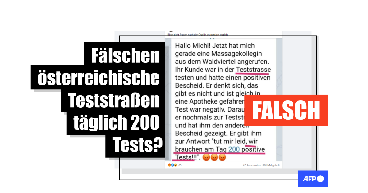 Österreichische Corona-Teststraßen fälschen nicht täglich 200 Fälle