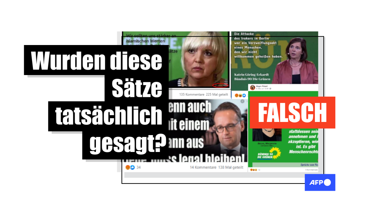 Hunderte User haben Mitte März falsche Zitate etwa von Grünen-Politikerinnen Claudia Roth (hier), Margarete Bause (hier) und Katrin Göring-Eckardt (hier) sowie Außenminister Heiko Maas (SPD) geteilt (hier). Teilweise werden dabei Aussagen wiederholt, die schon vor Jahren als falsch überführt wurden. Eine weitere Gemeinsamkeit der Postings: Sie verbreiten ausländerfeindliche Motive. Zeitlich fallen die erneut verbreiteten Zitate alle in den Wahlkampfentspurt vor den Landtagswahlen in Rheinland-Pfalz und Baden-Württemberg. Ein Nutzer teilte das vermeintliche Zitat von Margarete Bause etwa mit den Worten: "Wer am Sonntag die GRÜNEN wählt, hat’s furchtbar an der Klatsche!" AFP hat sich vier vermeintliche Zitate genauer angesehen.